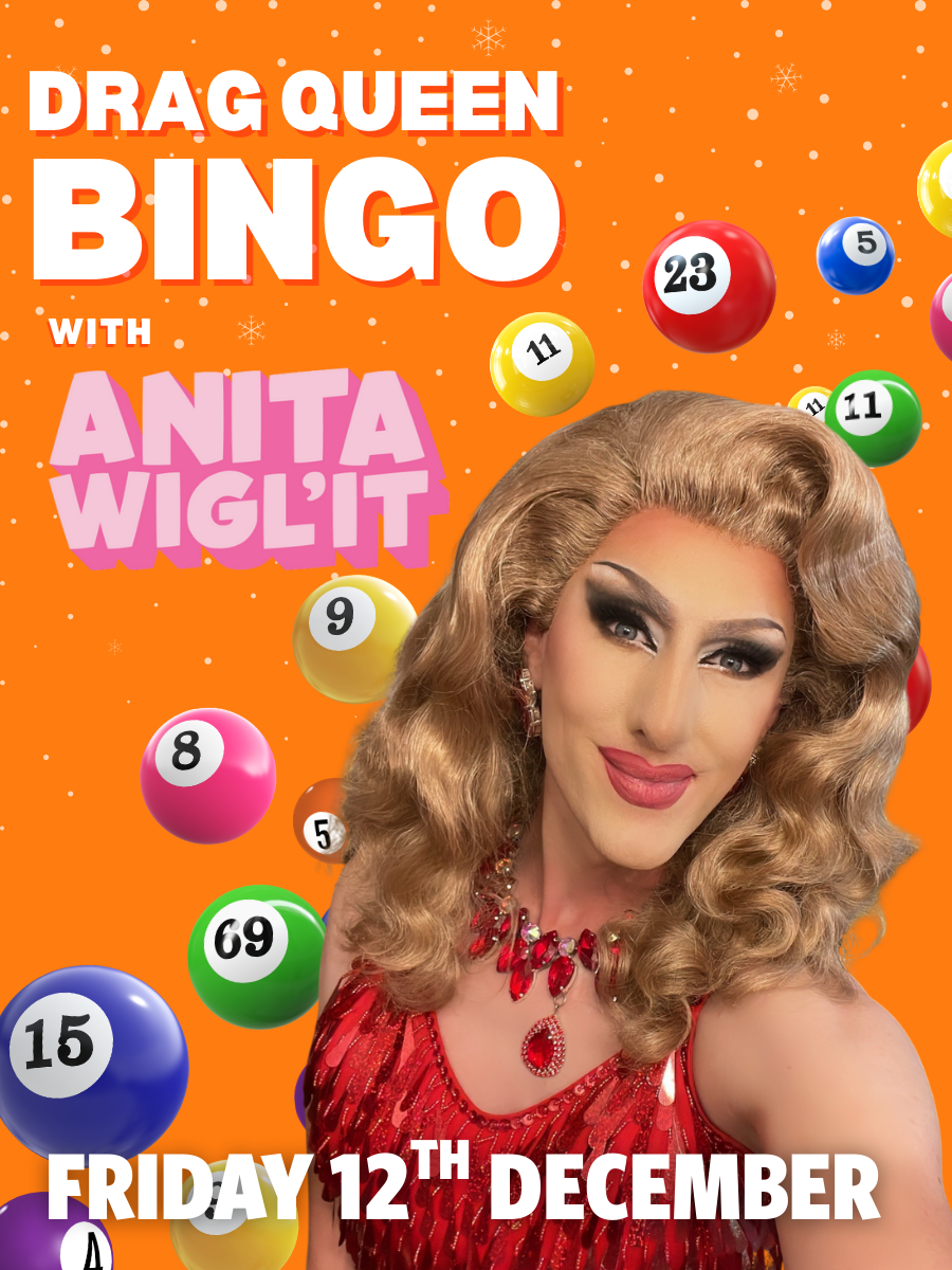 Expect outrageous laughs, dazzling performances, and plenty of chances to shout “BINGO!” as Anita hosts three hilarious rounds, complete with fabulous prizes and a sparkling drag show.